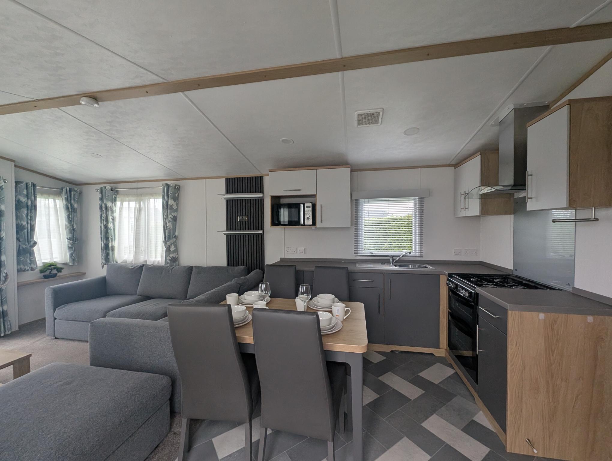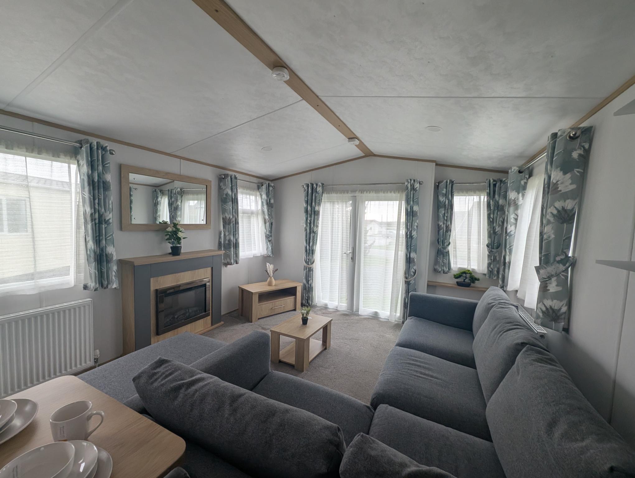 The 2021 Carnaby Silverdale (39ft x 12ft) is a spacious and stylish holiday home with a bright open-plan living area and modern finish throughout. The comfortable lounge with L-shaped sofa, feature fireplace and freestanding dining area makes it ideal for relaxing weekends or longer stays. With a well-designed layout and generous bedrooms, this model offers both practicality and comfort. Currently available here at Brownhill Holiday Park.